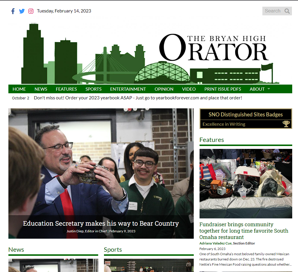 As Editor-in-Chief I am also the webmaster for BHSOrator.com. The website was developed in 2018 prior to my time at Bryan.