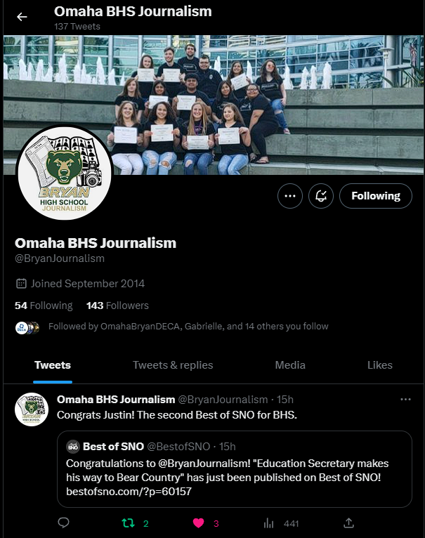 In addition to overseeing the production of the newspaper, I also manage our journalism department's social media pages.